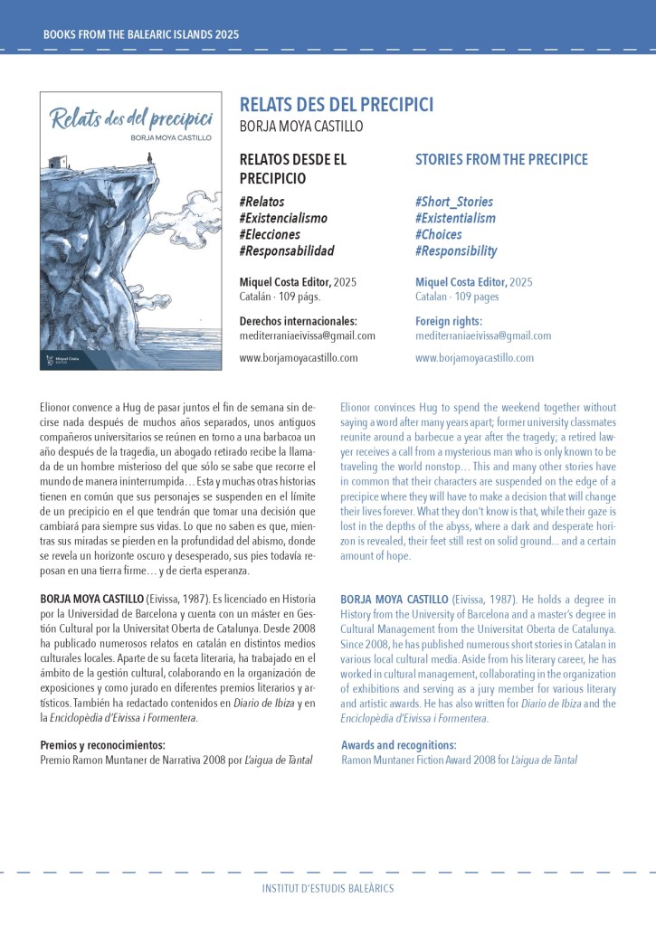 ‘Relats des del precipici’, de l’autor Borja Moya Castillo, seleccionat per l’Institut d’Estudis Baleàrics per al catàleg internacional de ficció 2025